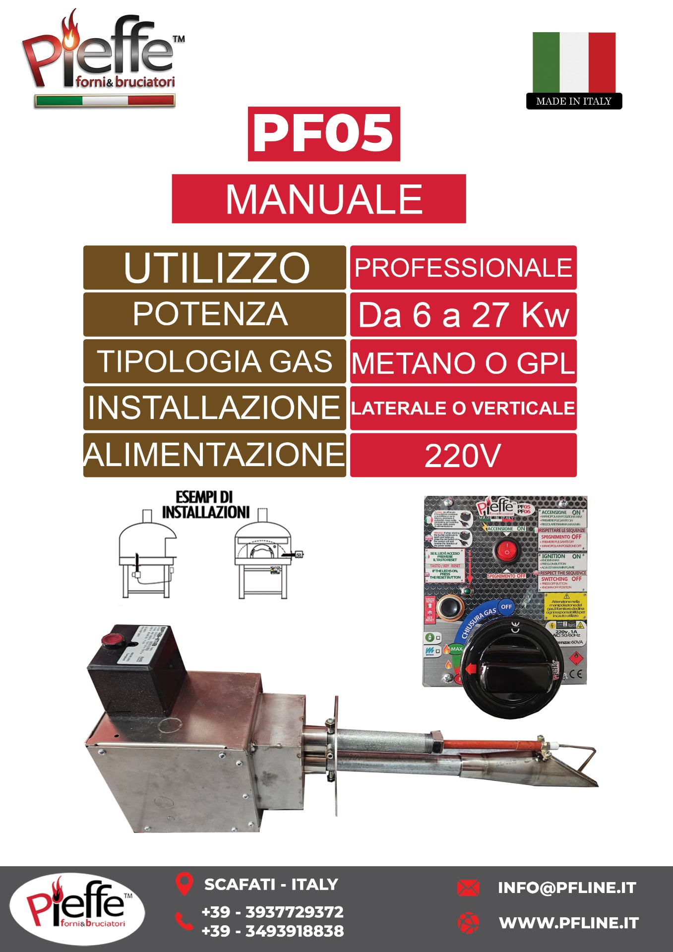 Il PF05 è un bruciatore a gas professionale ad aria aspirata, progettato per offrire il massimo della resa termica.